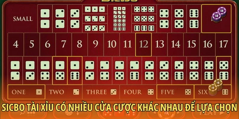 Sicbo tài xỉu có nhiều cửa cược khác nhau để lựa chọn